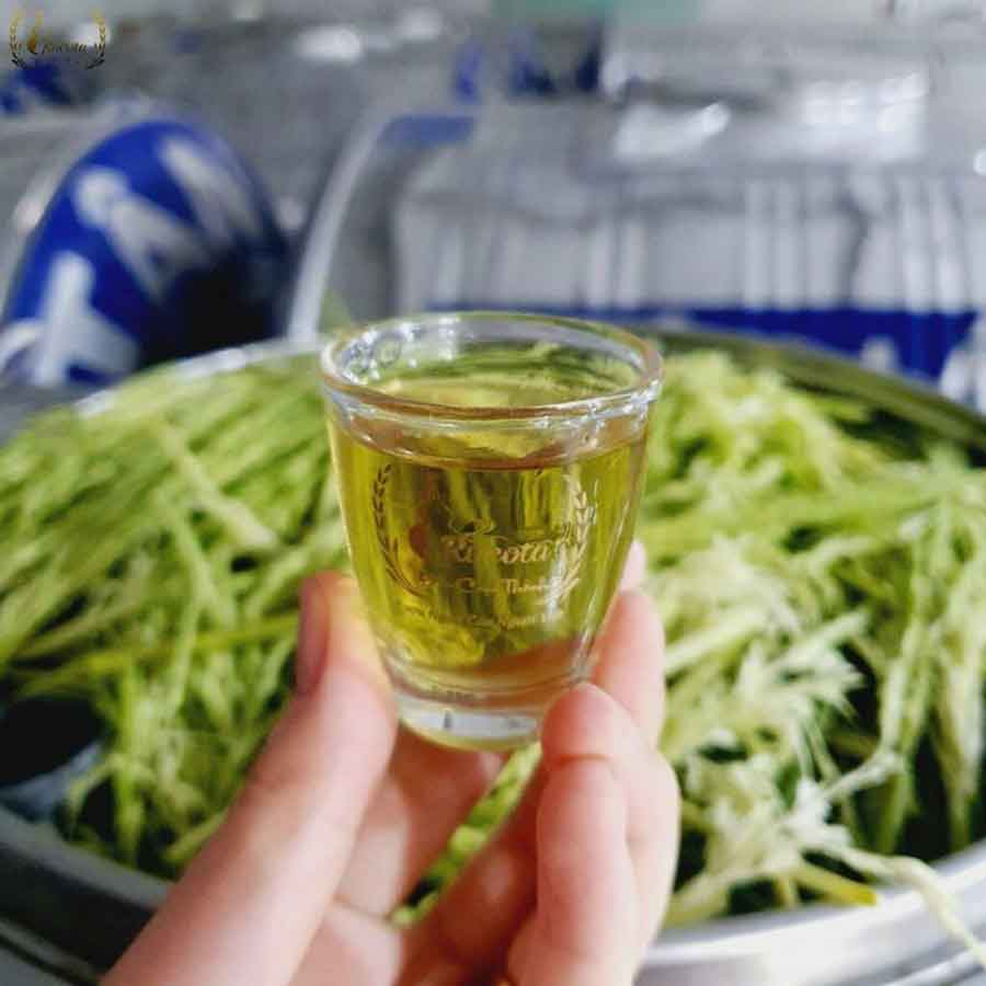 – Rượu gạo: Được cơ sở tự làm theo phương pháp ủ men truyền thống, quá trình chưng cất bằng tháp đa tầng giúp loại bỏ hiệu quả andehit, methanol và các độc tố có hại, rượu sau khi chưng cất sẽ để khoảng 3 tháng trước khi ngâm.